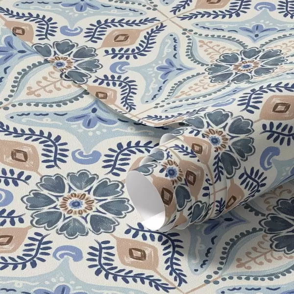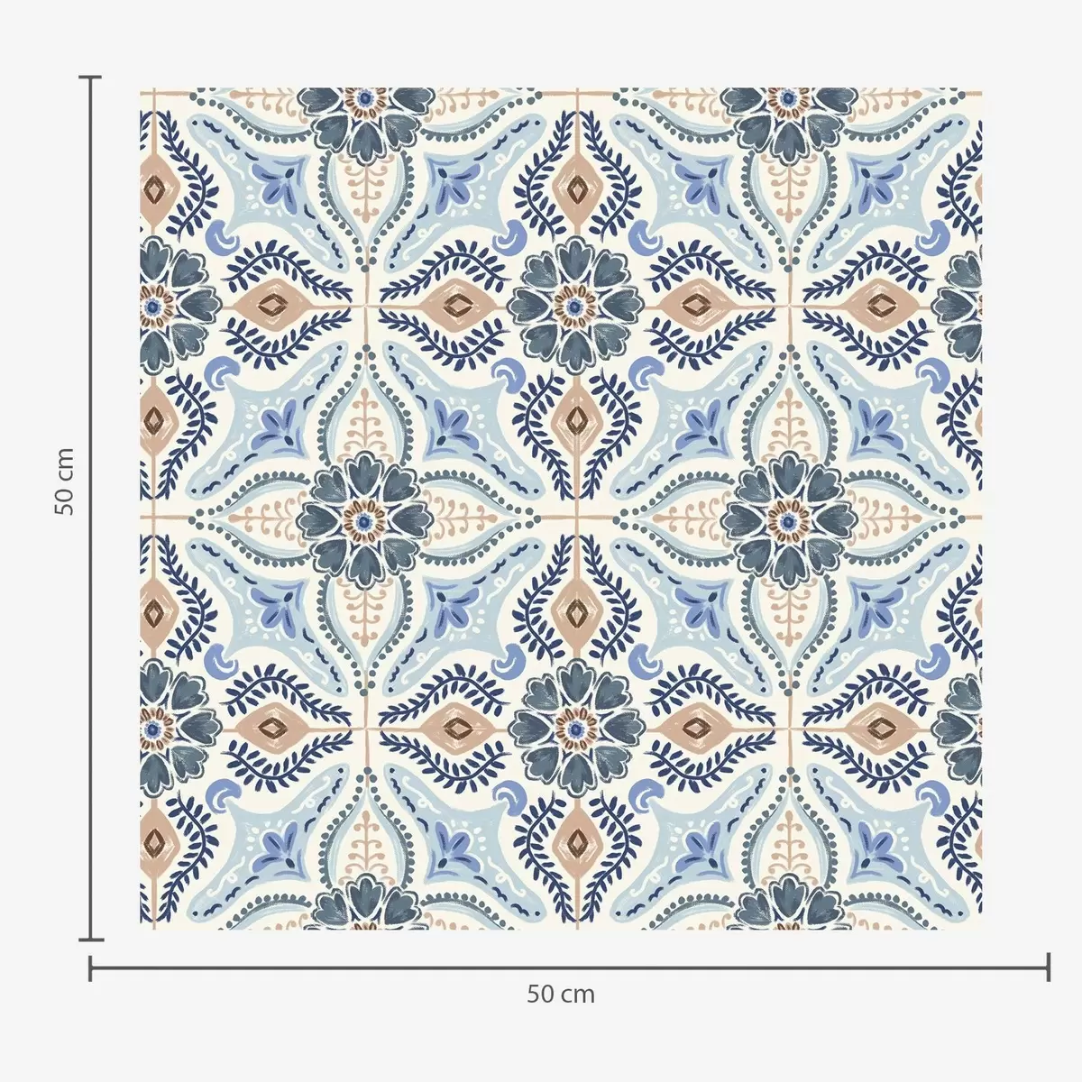 Tapeta Modro-béžový ornament v štýle dlaždíc namaľovaný akvarelom Nr. a01085