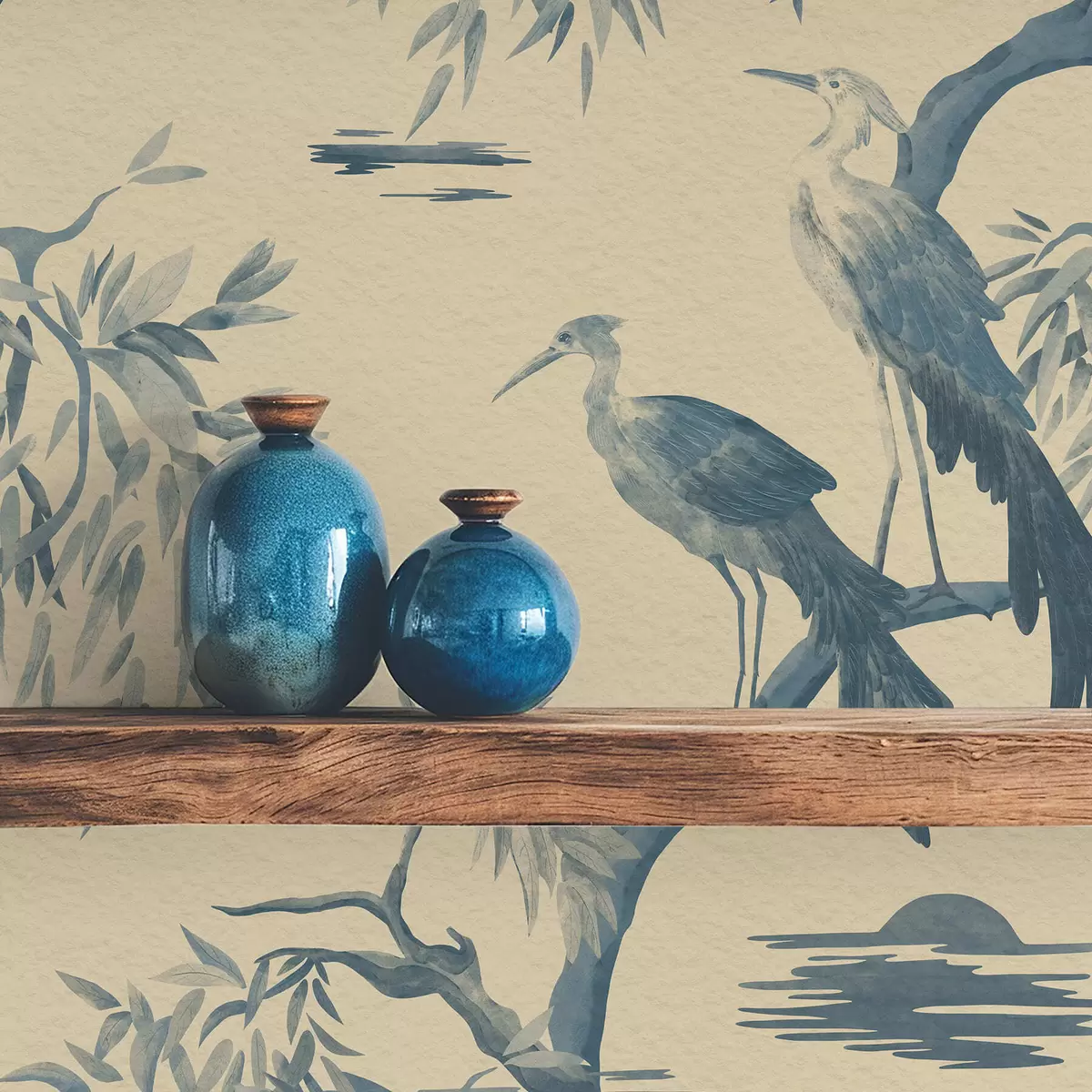 Tapeta Vtáky na konári v modrých odtieňoch Nr. a01116