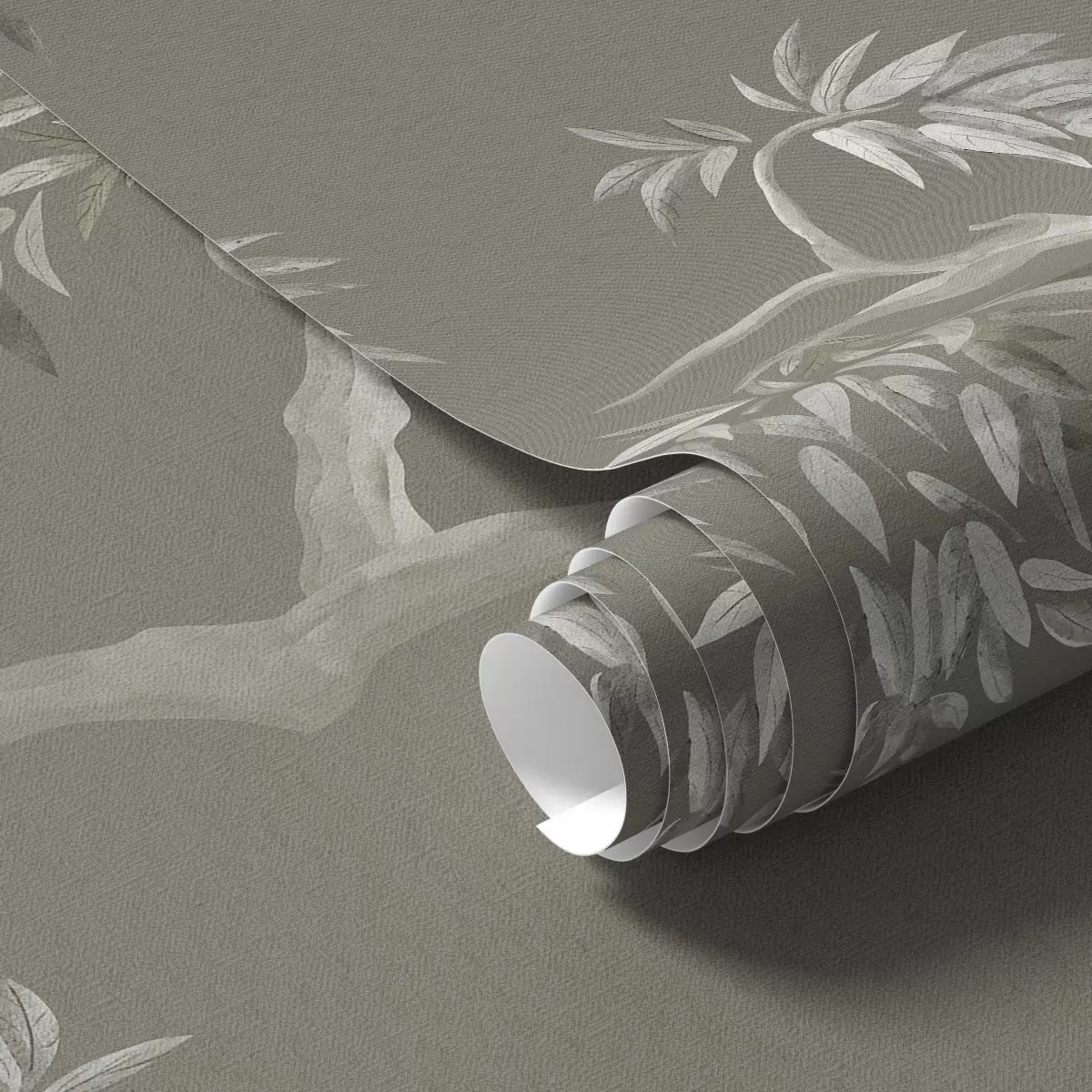 Tapeta Ľahká vetva s listami na olivovom pozadí Nr. a01117v1