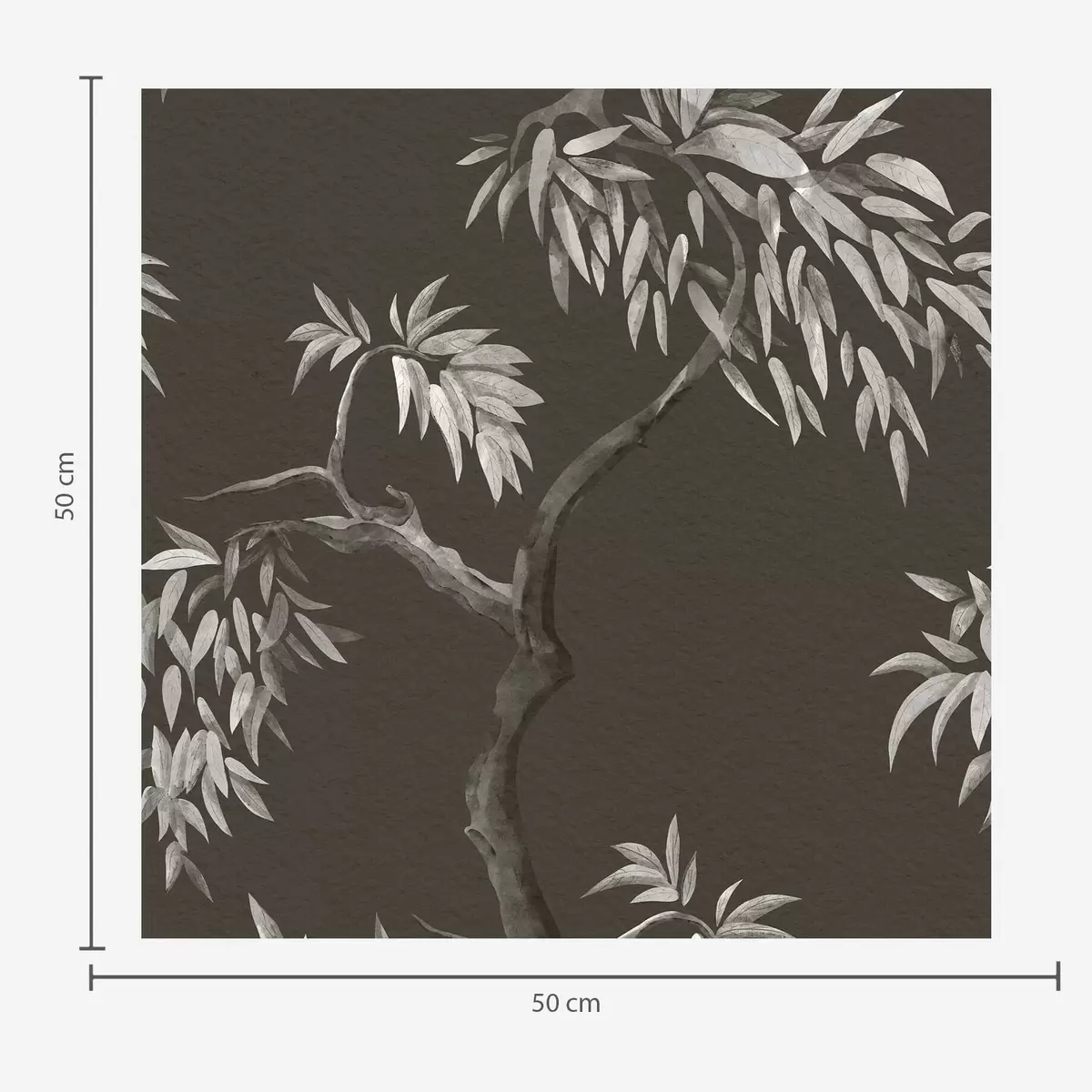 Tapeta Čiernobiela vetva s listami na tmavom pozadí Nr. a01117v2