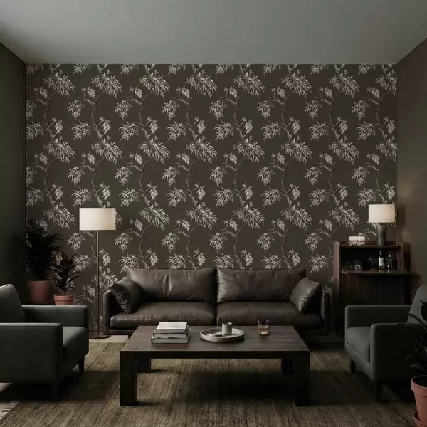 Tapeta Čiernobiela vetva s listami na tmavom pozadí Nr. a01117v2