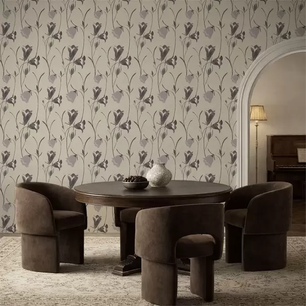 Tapeta Sivé zvončeky na svetlo béžovom pozadí Nr. a01119