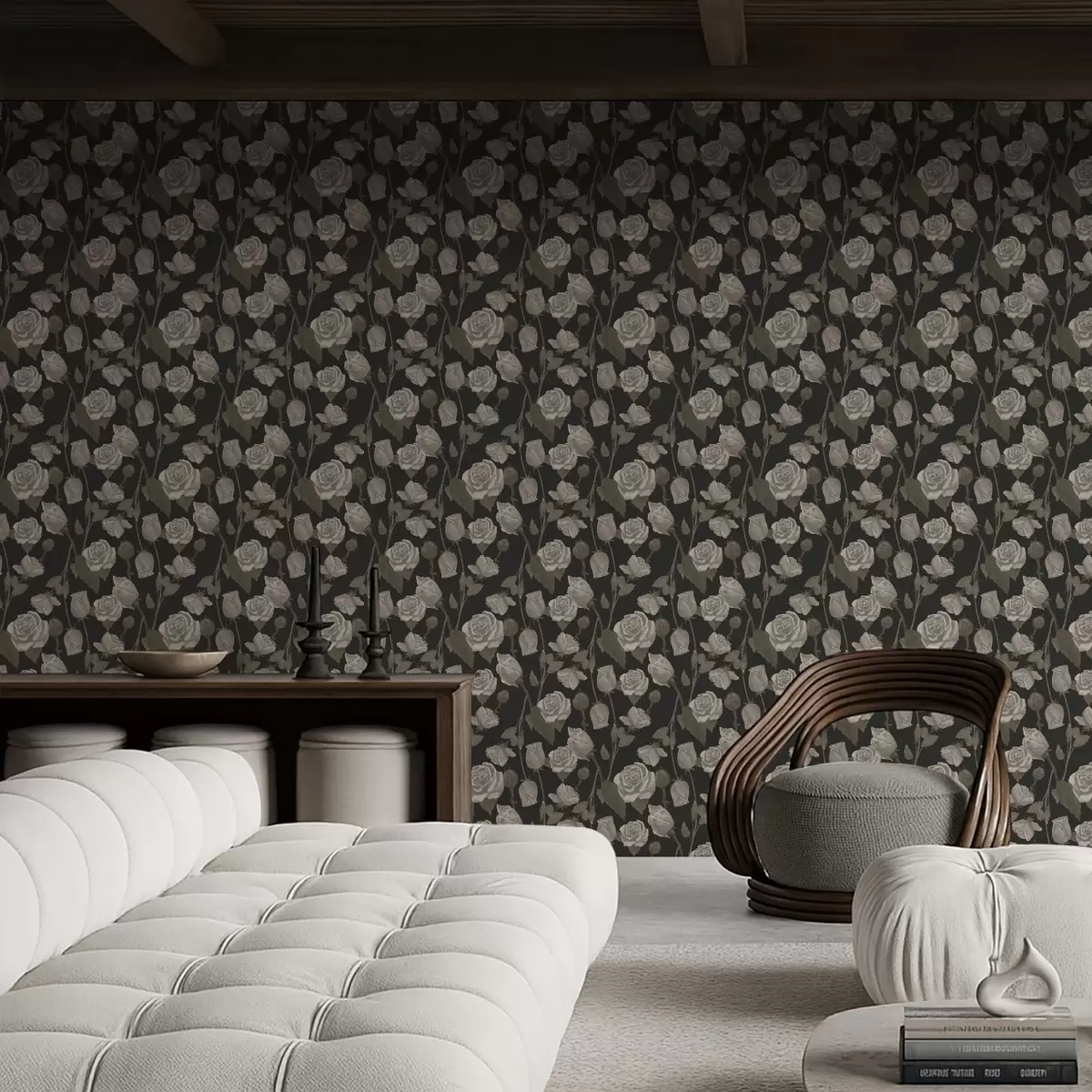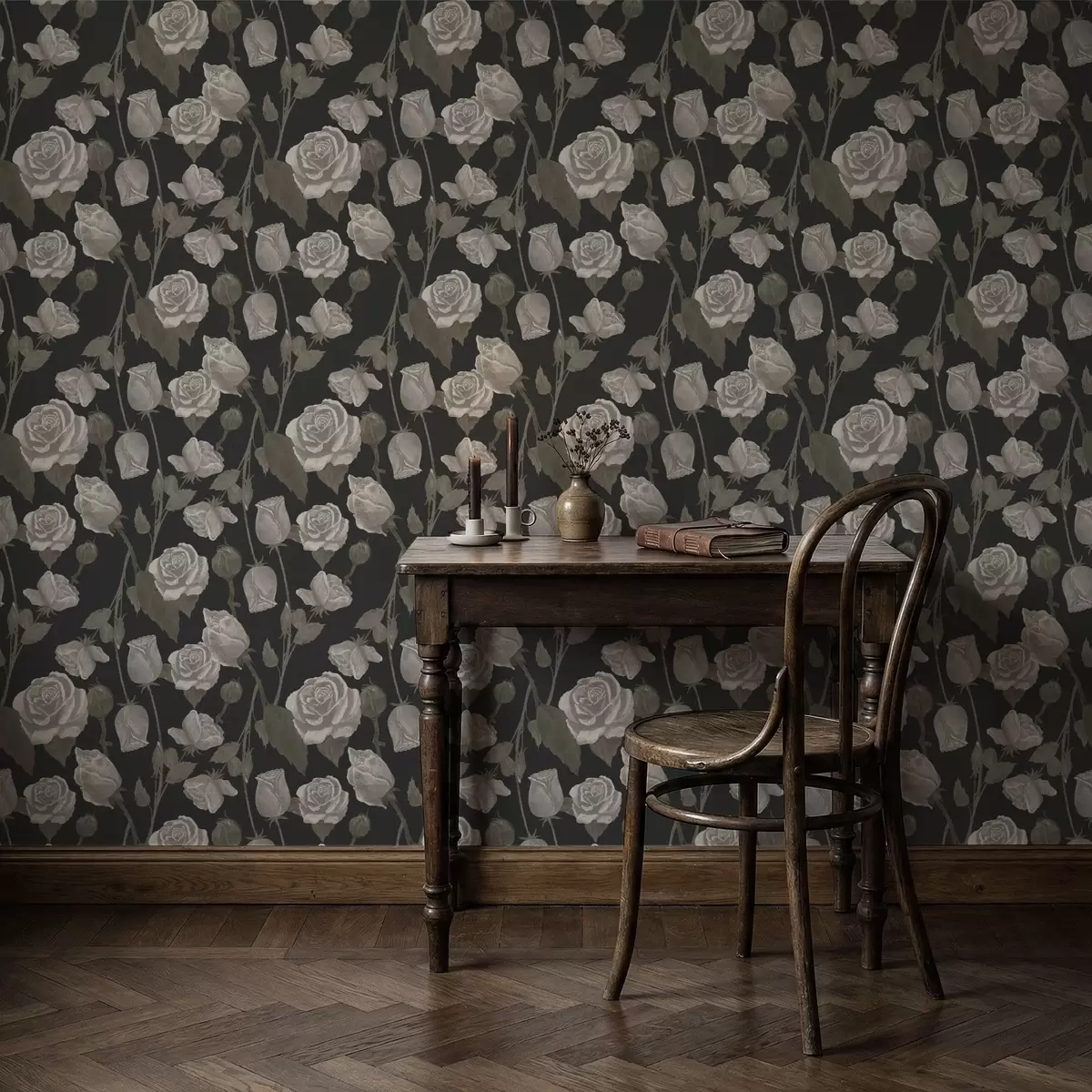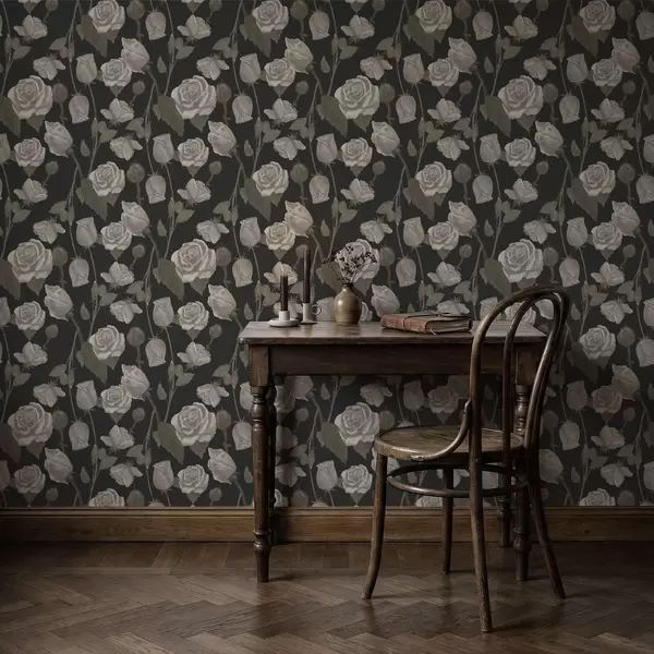 Tapeta Kvetinový vzor s ružami na tmavom pozadí Nr. a01123