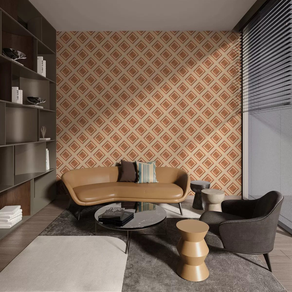 Tapeta Geometrický diamantový vzor v terakotových odtieňoch Nr. a01128