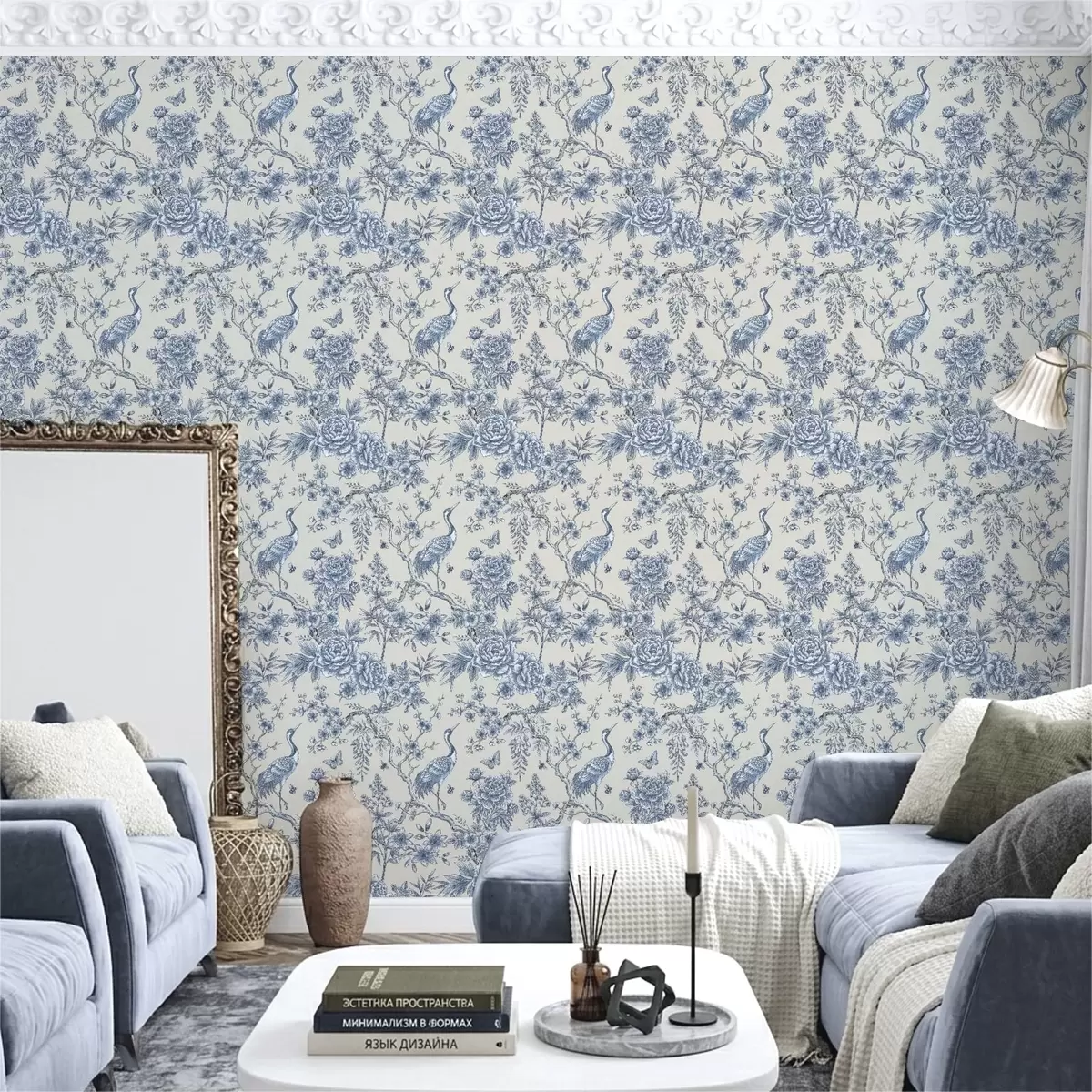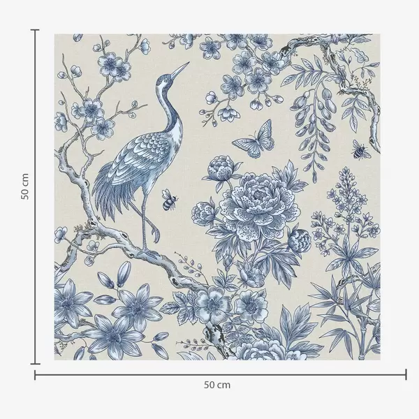 Tapeta Modrý kvetinový ornament s vtákom a vetvičkami Nr. a01132
