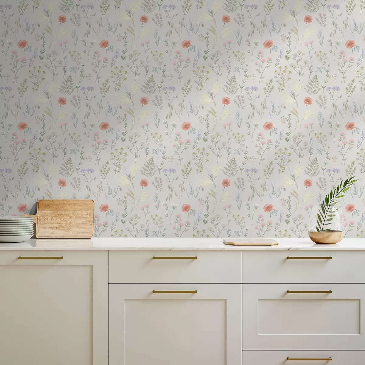 Tapeta Jemný vzor z poľných kvetov na svetlom pozadí Nr. a01152