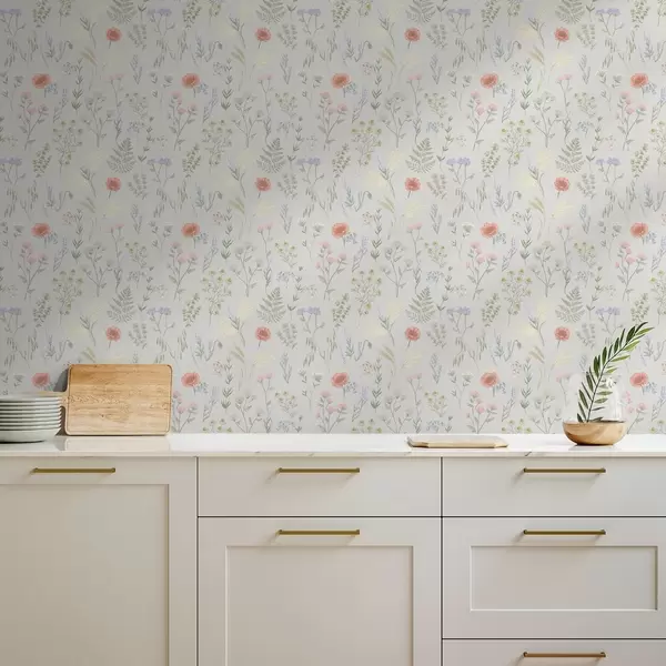 Tapeta Jemný vzor z poľných kvetov na svetlom pozadí Nr. a01152