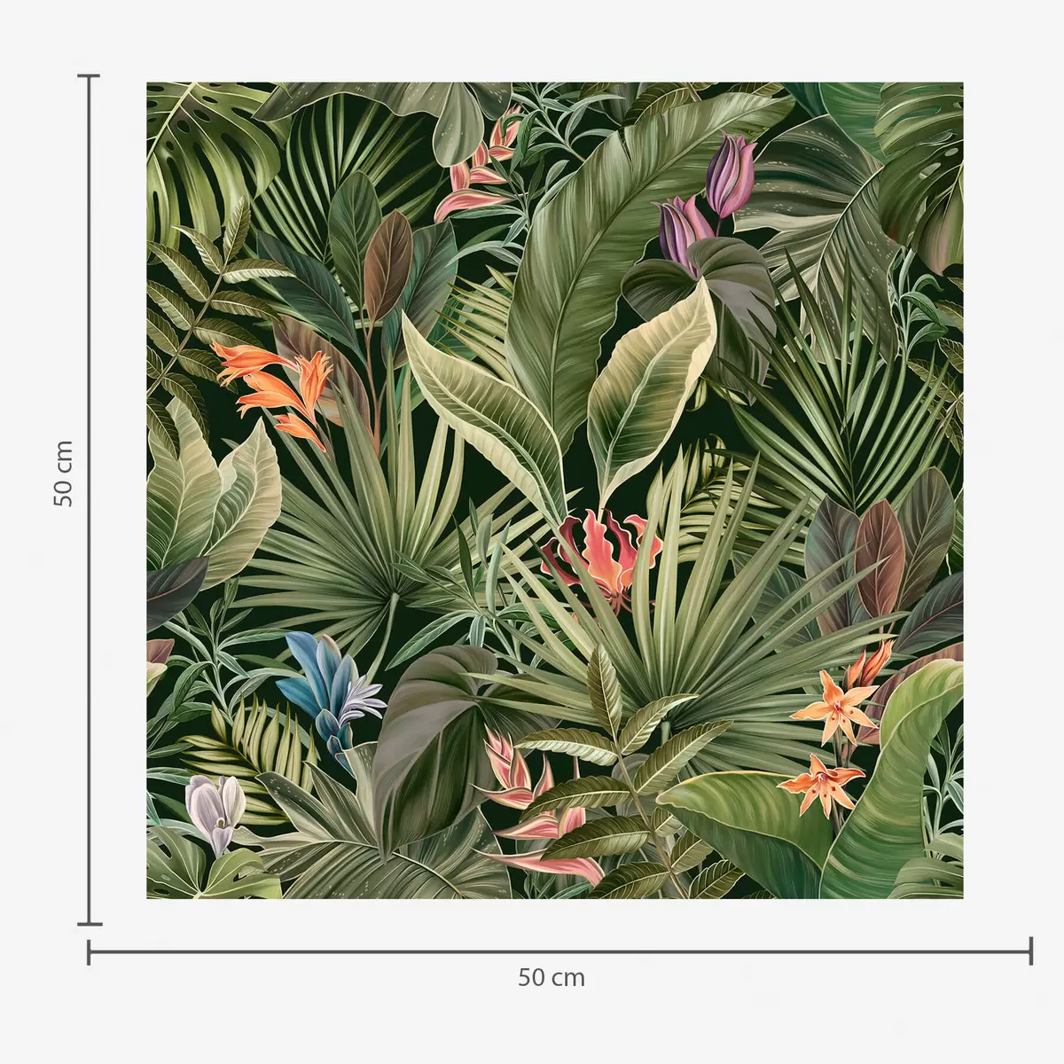 Tapeta Tropické listy s kvetmi na tmavom pozadí Nr. a01153