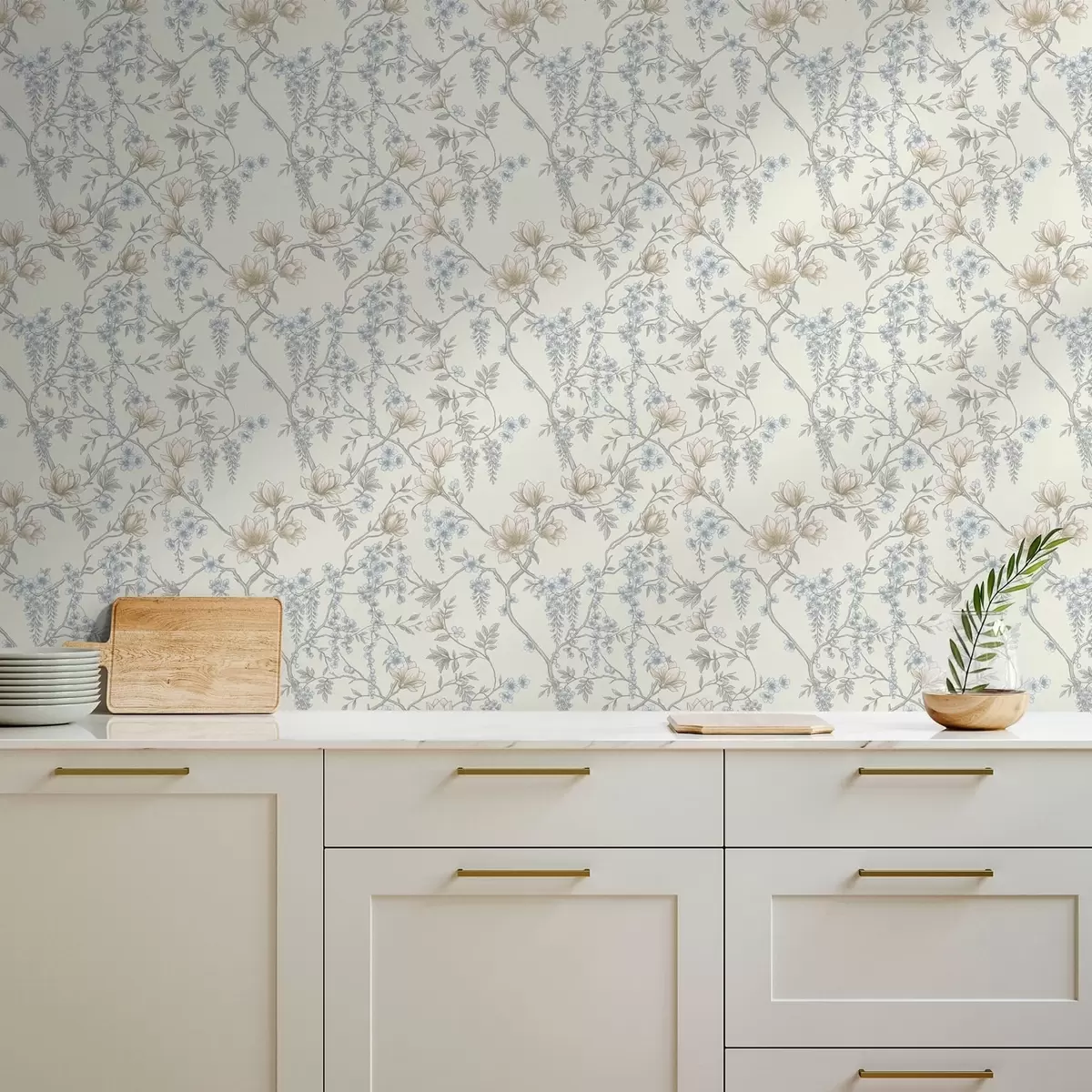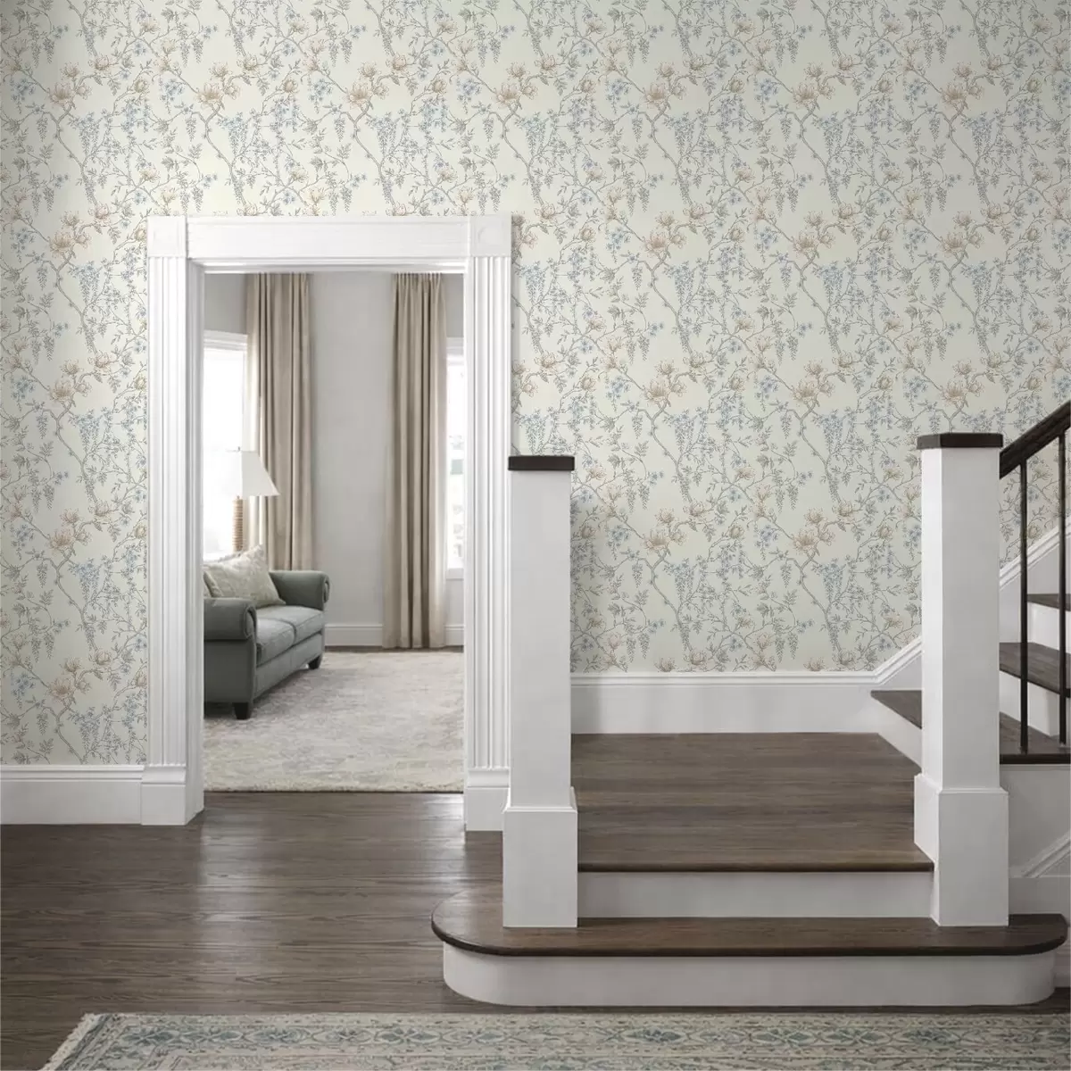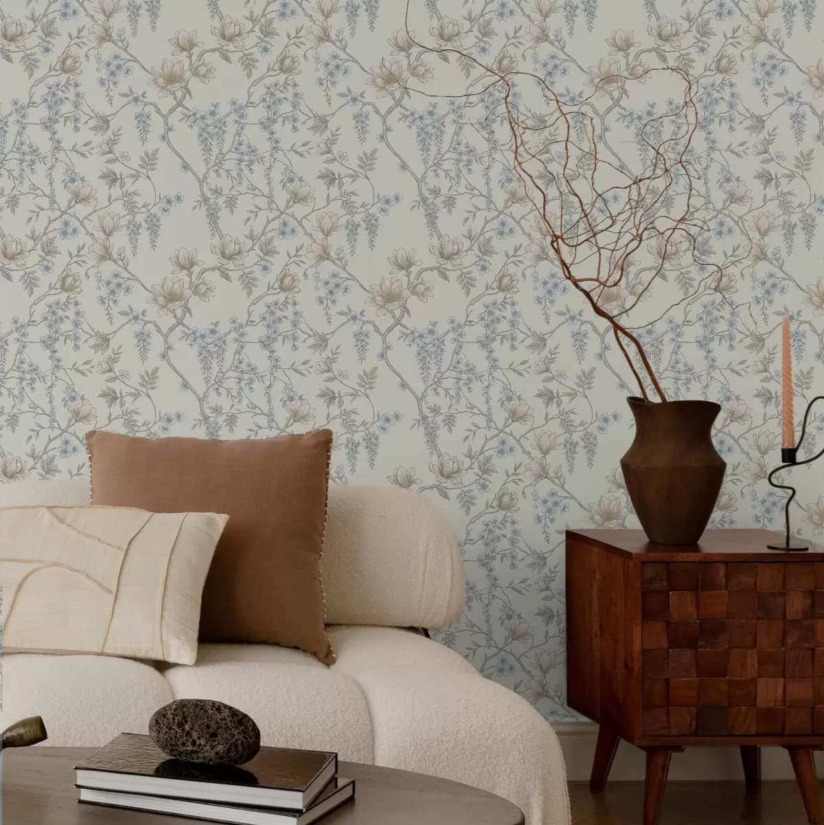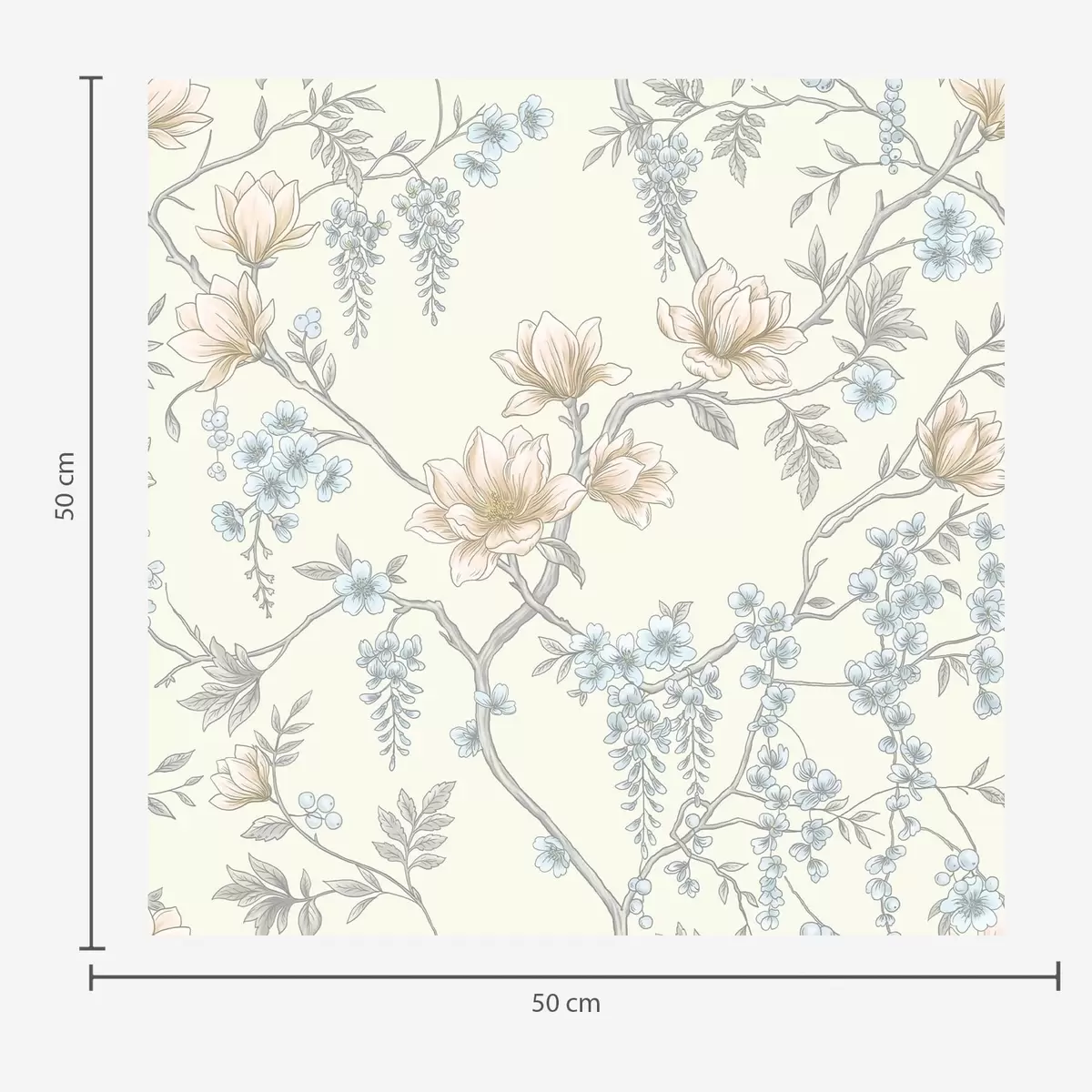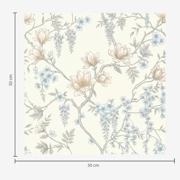 Tapeta Jemný kvetinový vzor s vetvičkami a kvetmi Nr. a01159