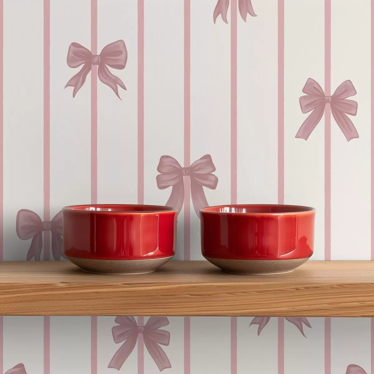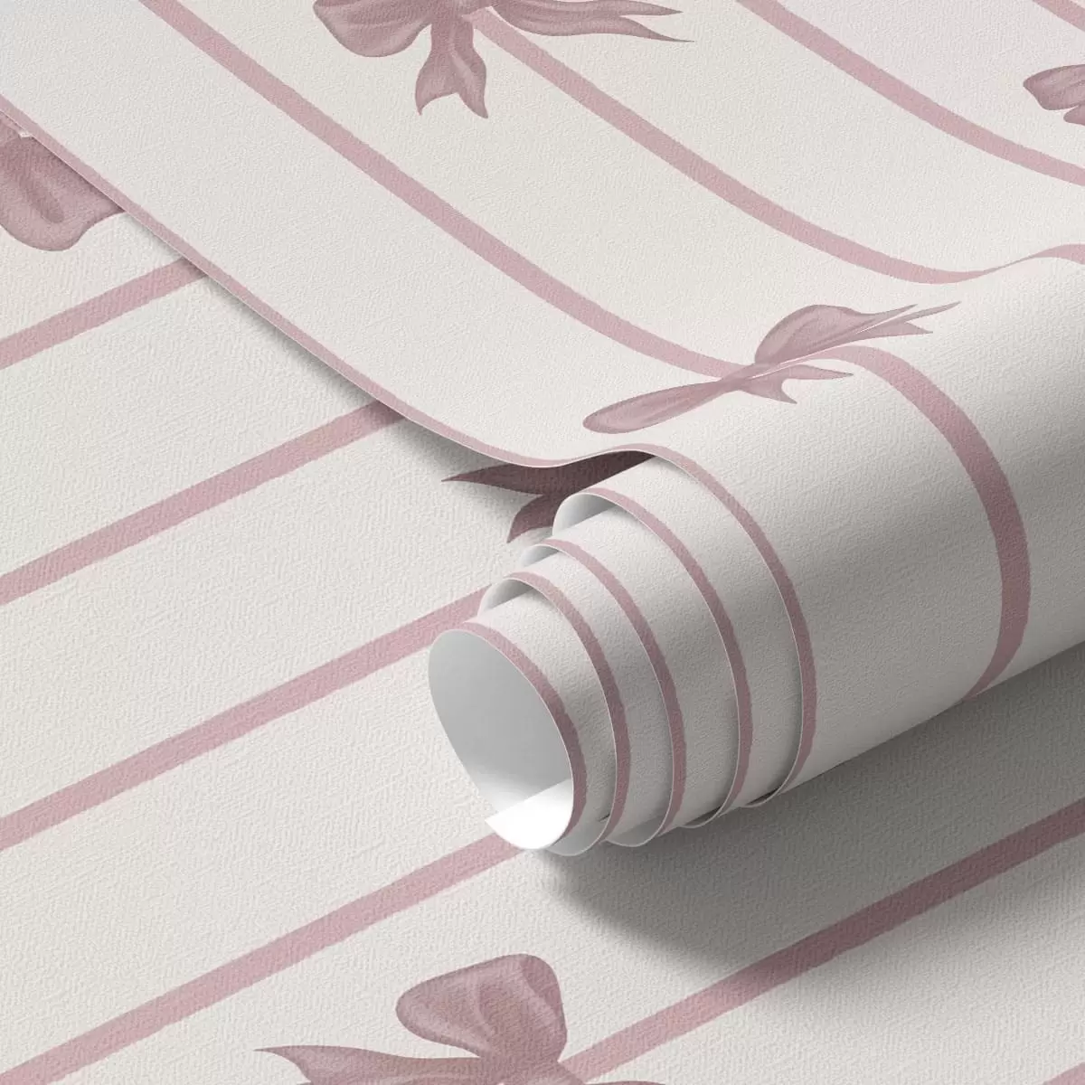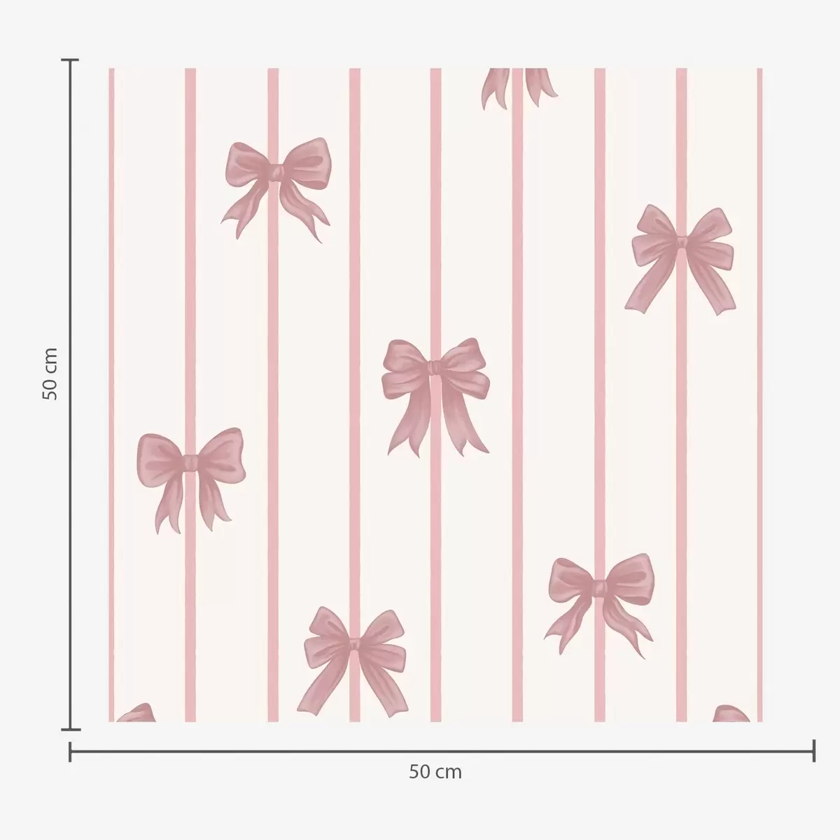 Tapeta Ružové mašličky na vertikálnych pruhoch na svetlom pozadí Nr. a01162