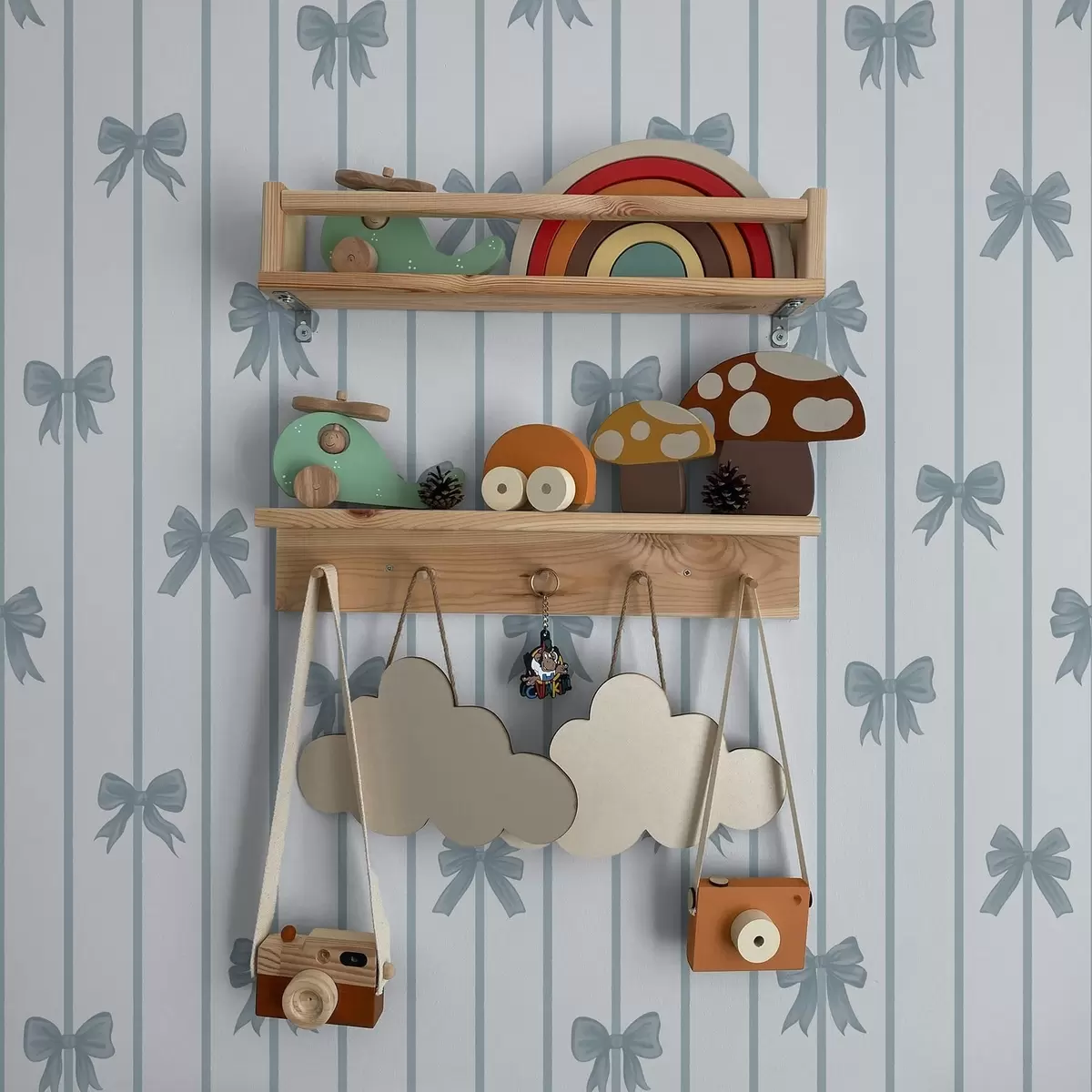 Tapeta Modré mašličky na pruhovanom svetlom pozadí Nr. a01162v2