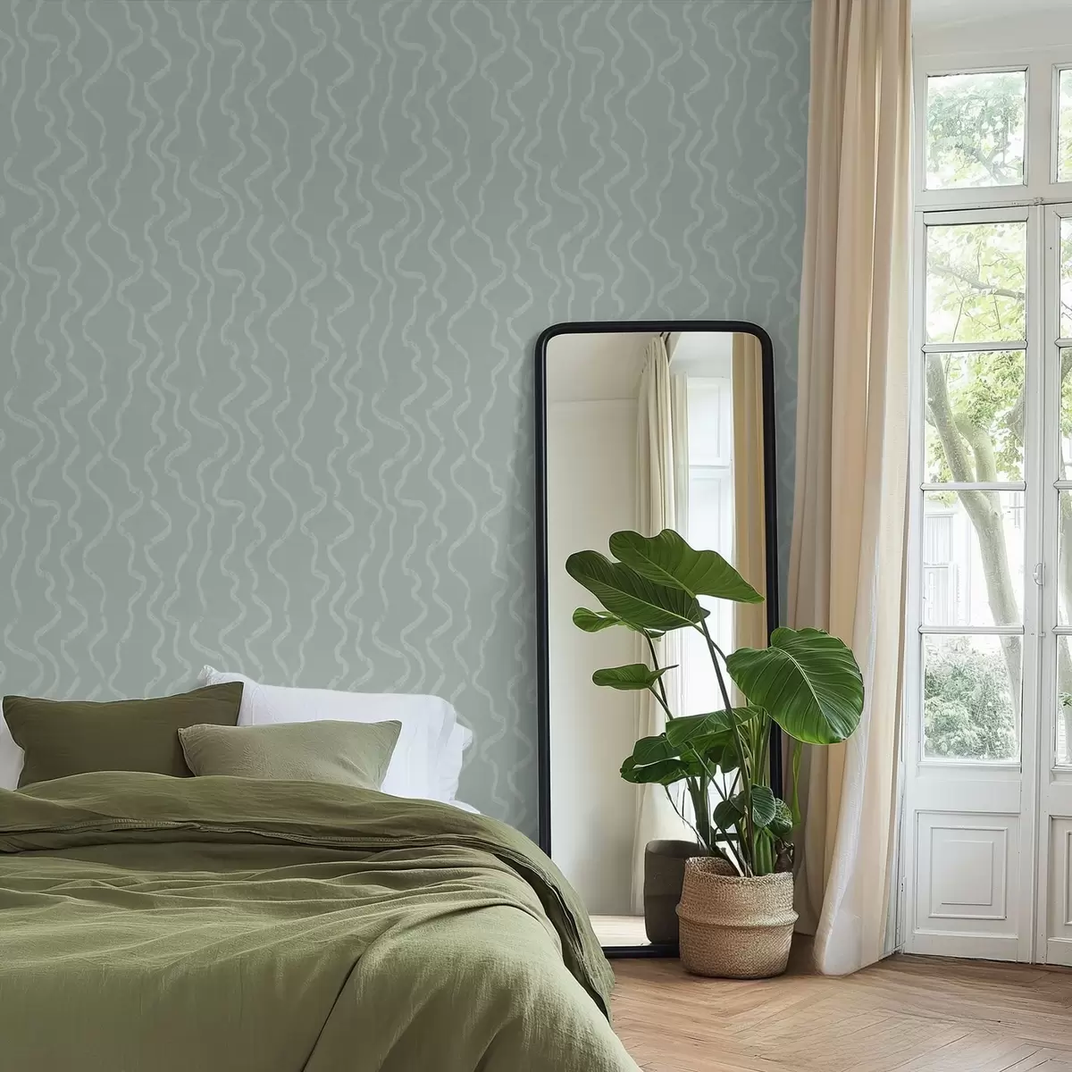 Tapeta Vlnitý svetelný vzor na zelenom pozadí Nr. a01167v2