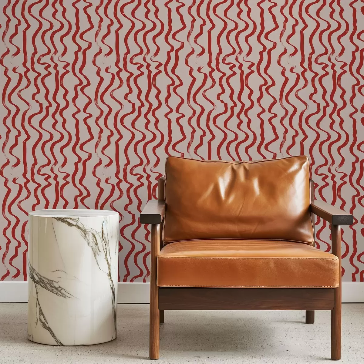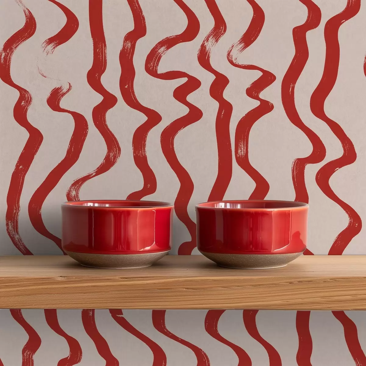 Tapeta Červené vlnovky na svetlom pozadí Nr. a01168