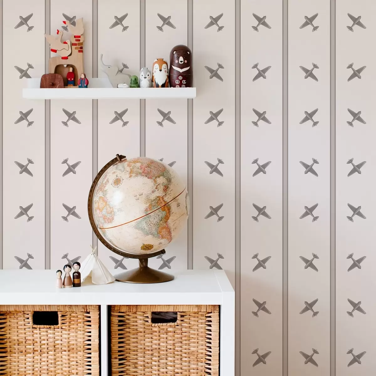Tapeta Lietadlá s pruhovaným vzorom na svetlom pozadí Nr. a01170v1