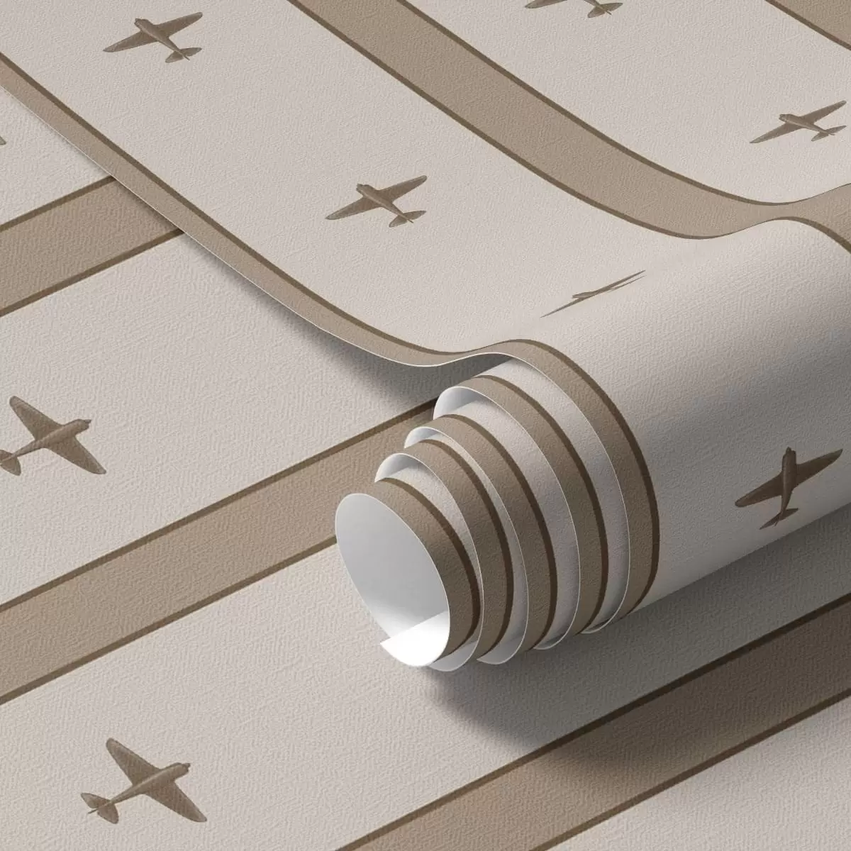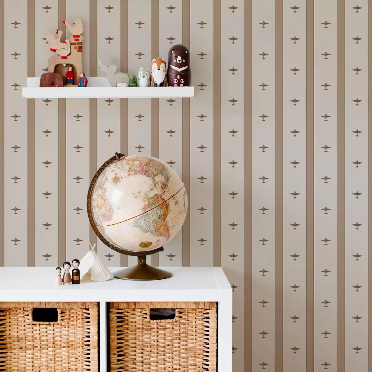 Tapeta Malé lietadlá s pruhmi na hnedom pozadí Nr. a01171v2