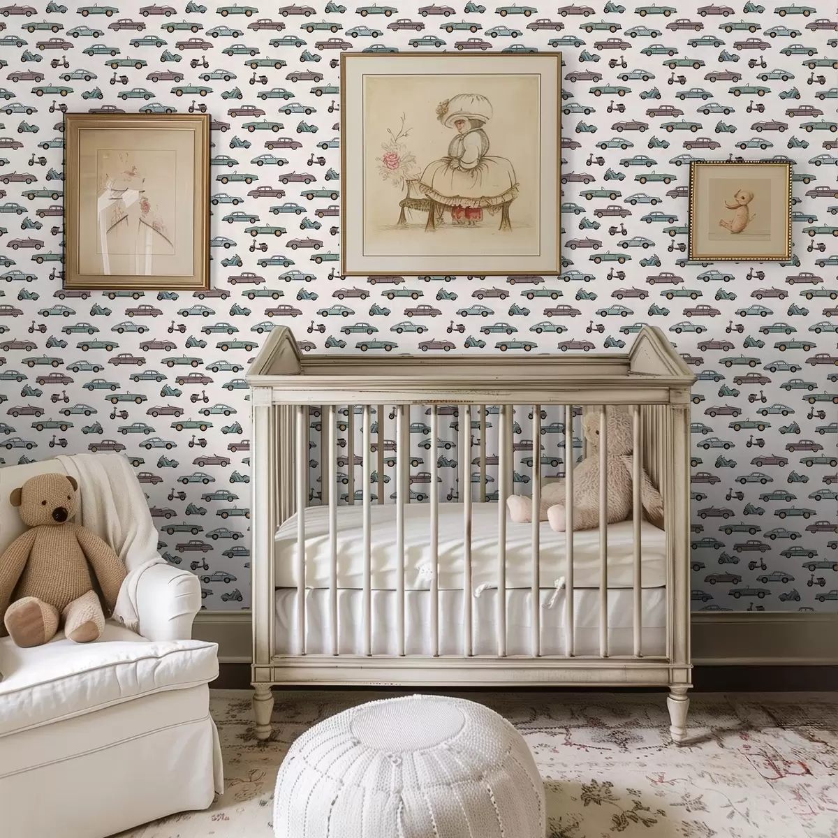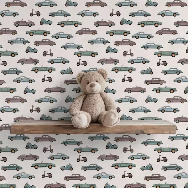 Tapeta Retro autá a skútre na svetlom pozadí Nr. a01172