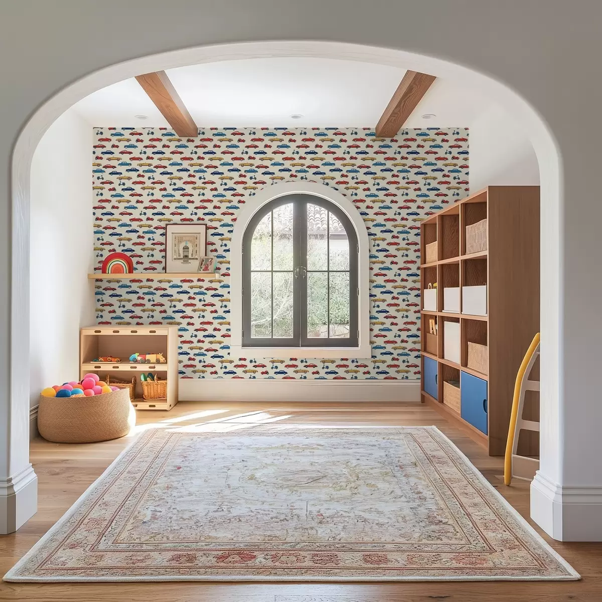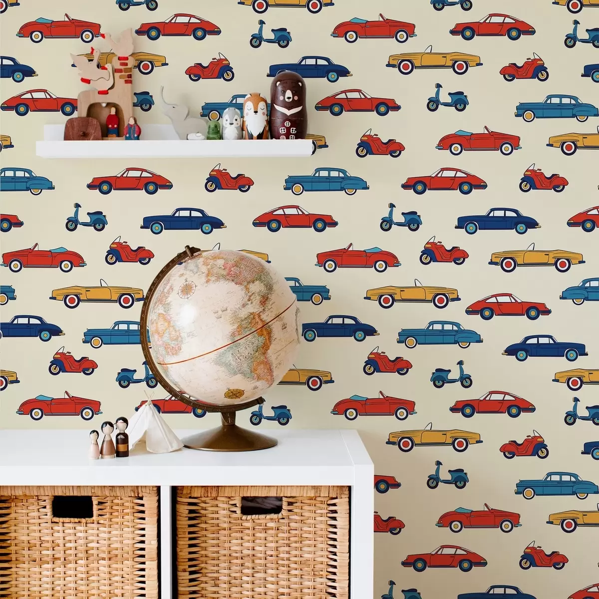 Tapeta Farbené retro autá a skútre na svetlom pozadí Nr. a01172v1
