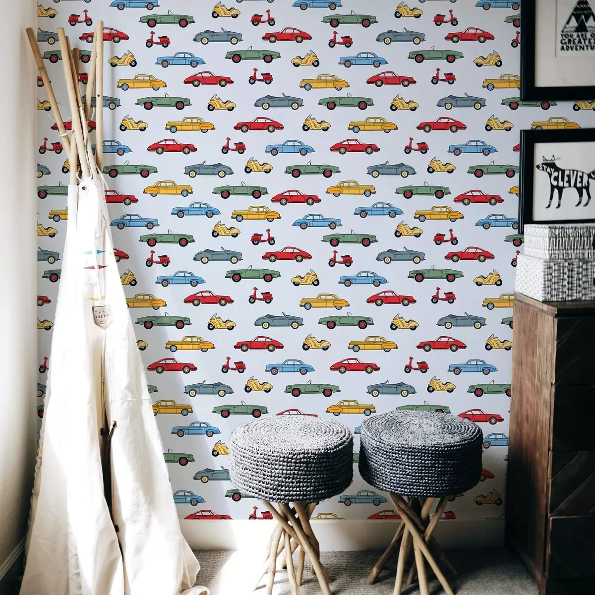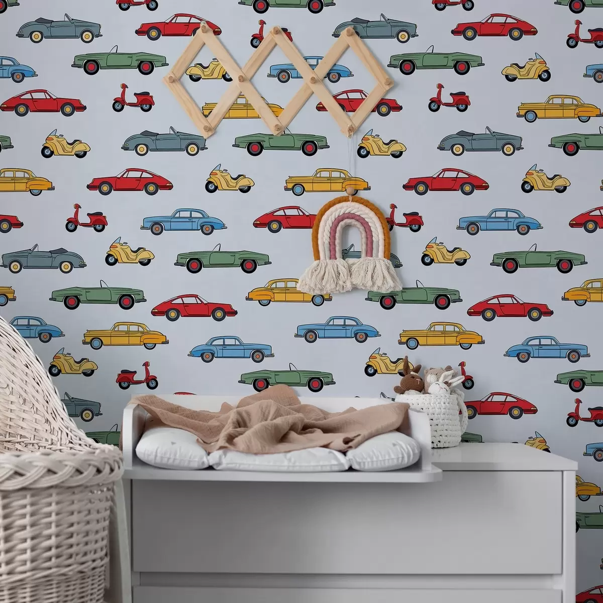 Tapeta Retro autá a skútre na modrom pozadí Nr. a01172v2