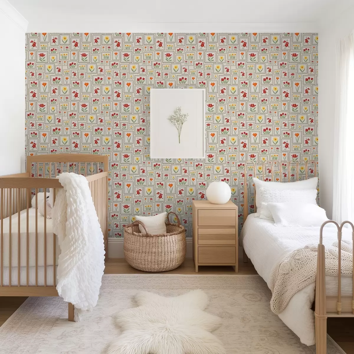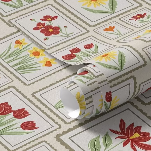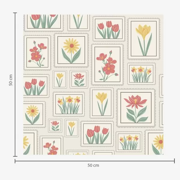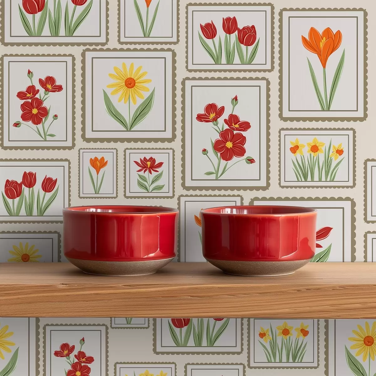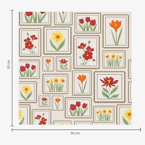 Tapeta Kvetinové ilustrácie v rámoch v teplých odtieňoch Nr. a01173