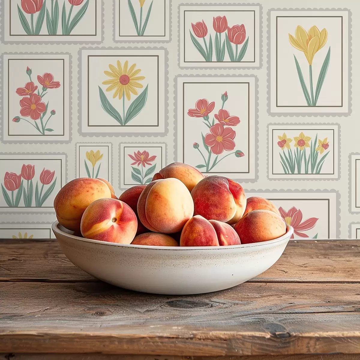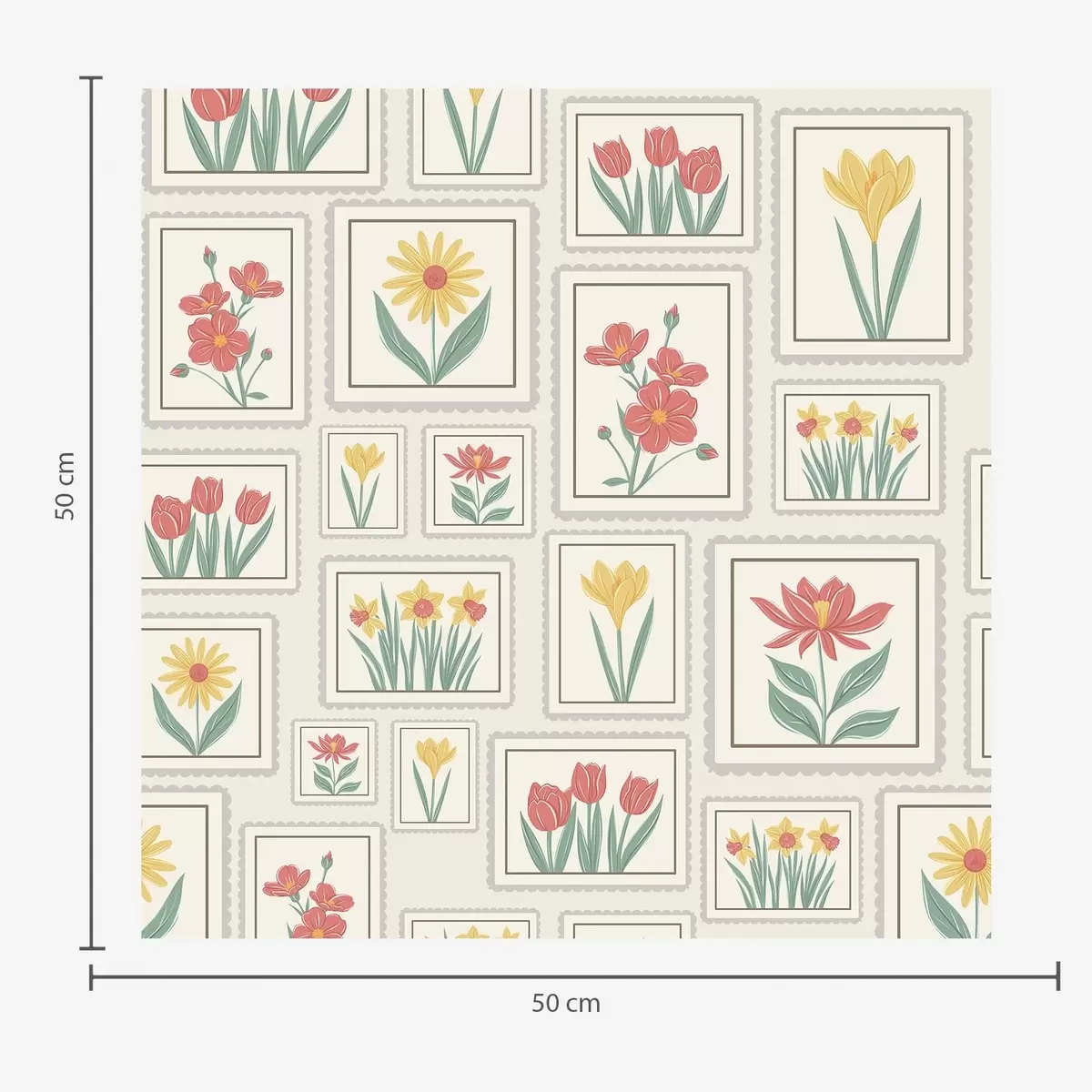 Tapeta Kvetinové ilustrácie v ráme na svetlom pozadí Nr. a01173v1