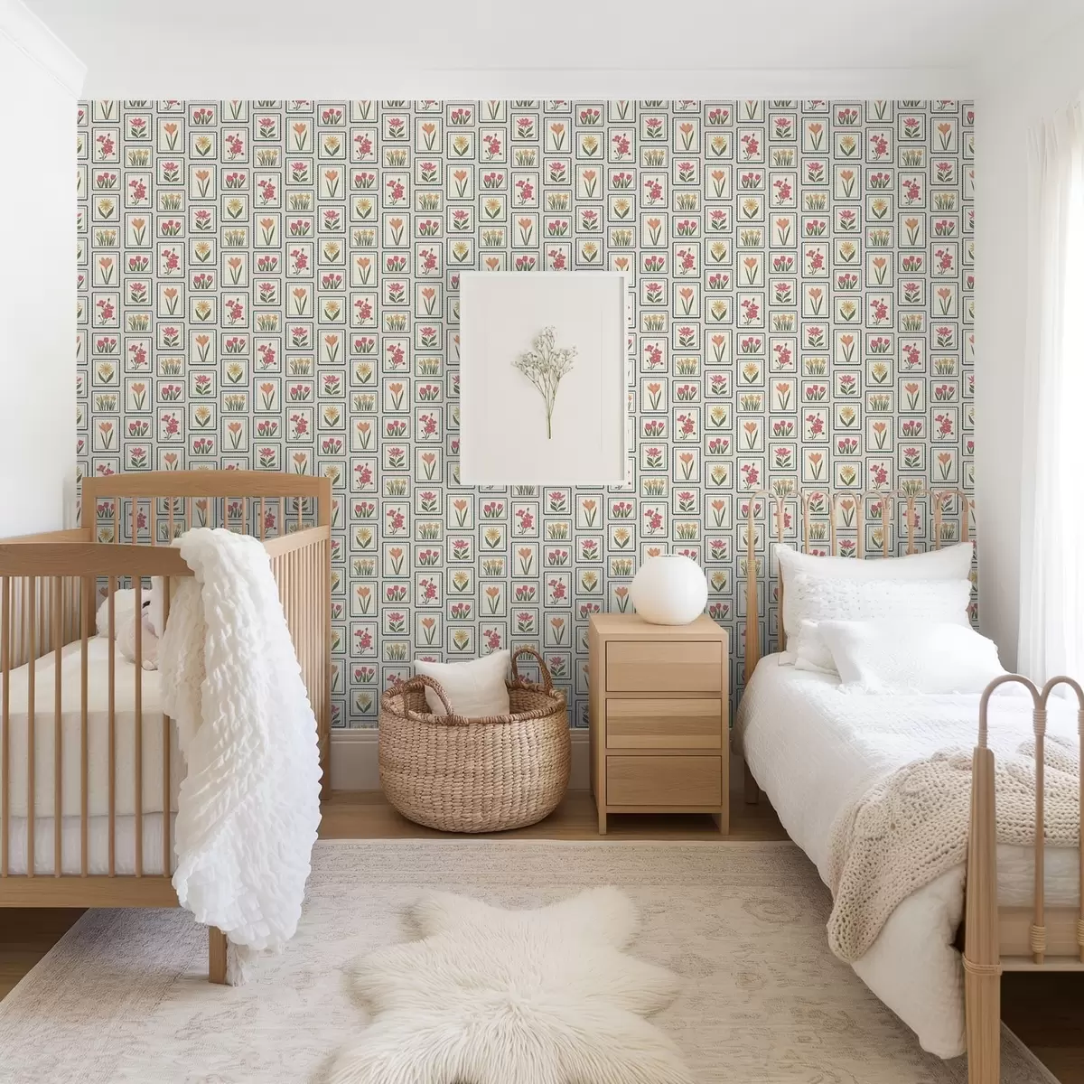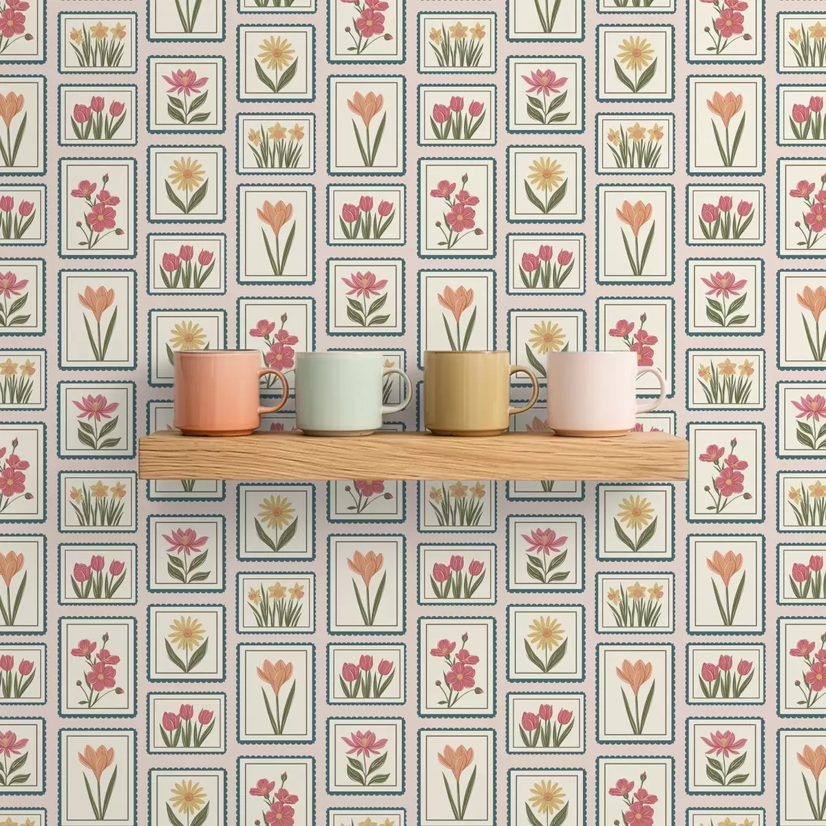 Tapeta Kvetinové ilustrácie v rámoch s okrajmi Nr. a01174