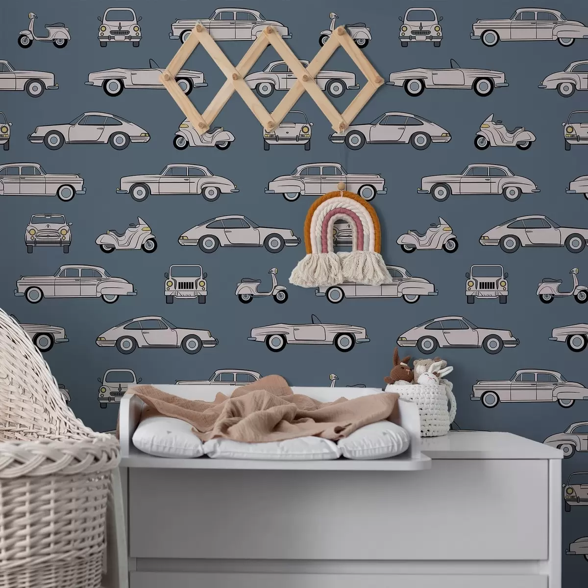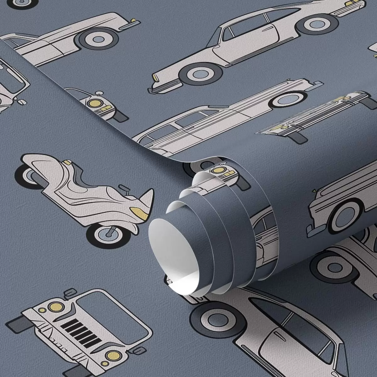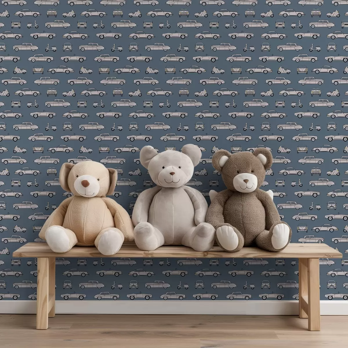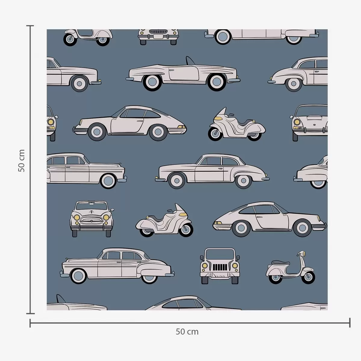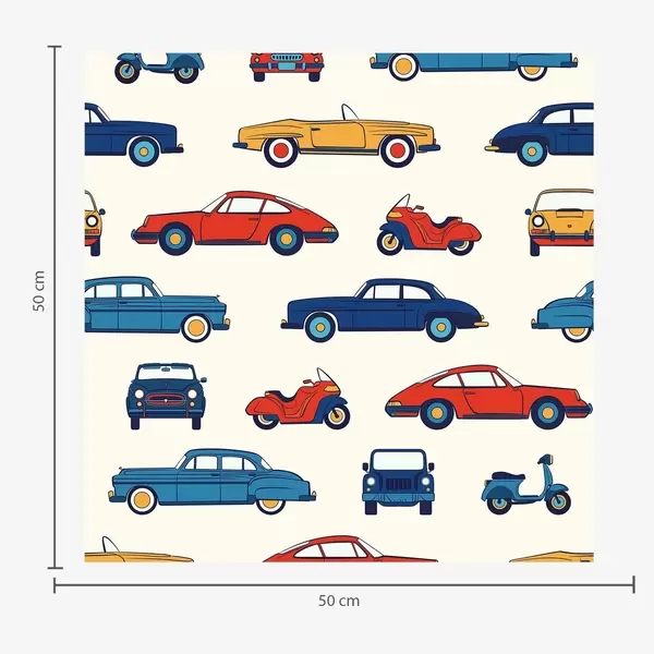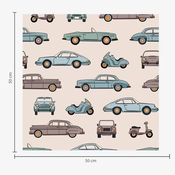 Tapeta Retro autá a skútre na modrom pozadí Nr. a01178