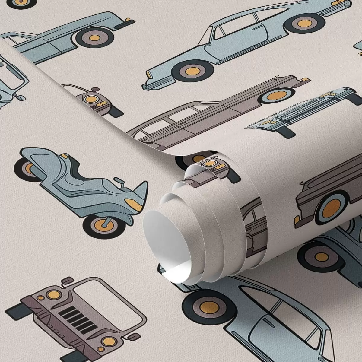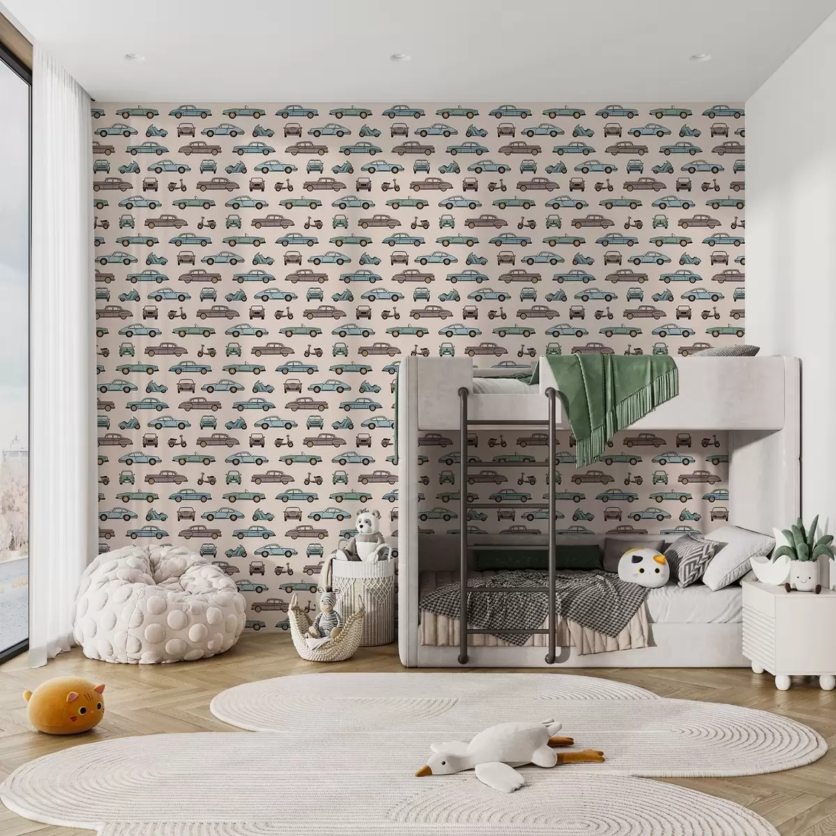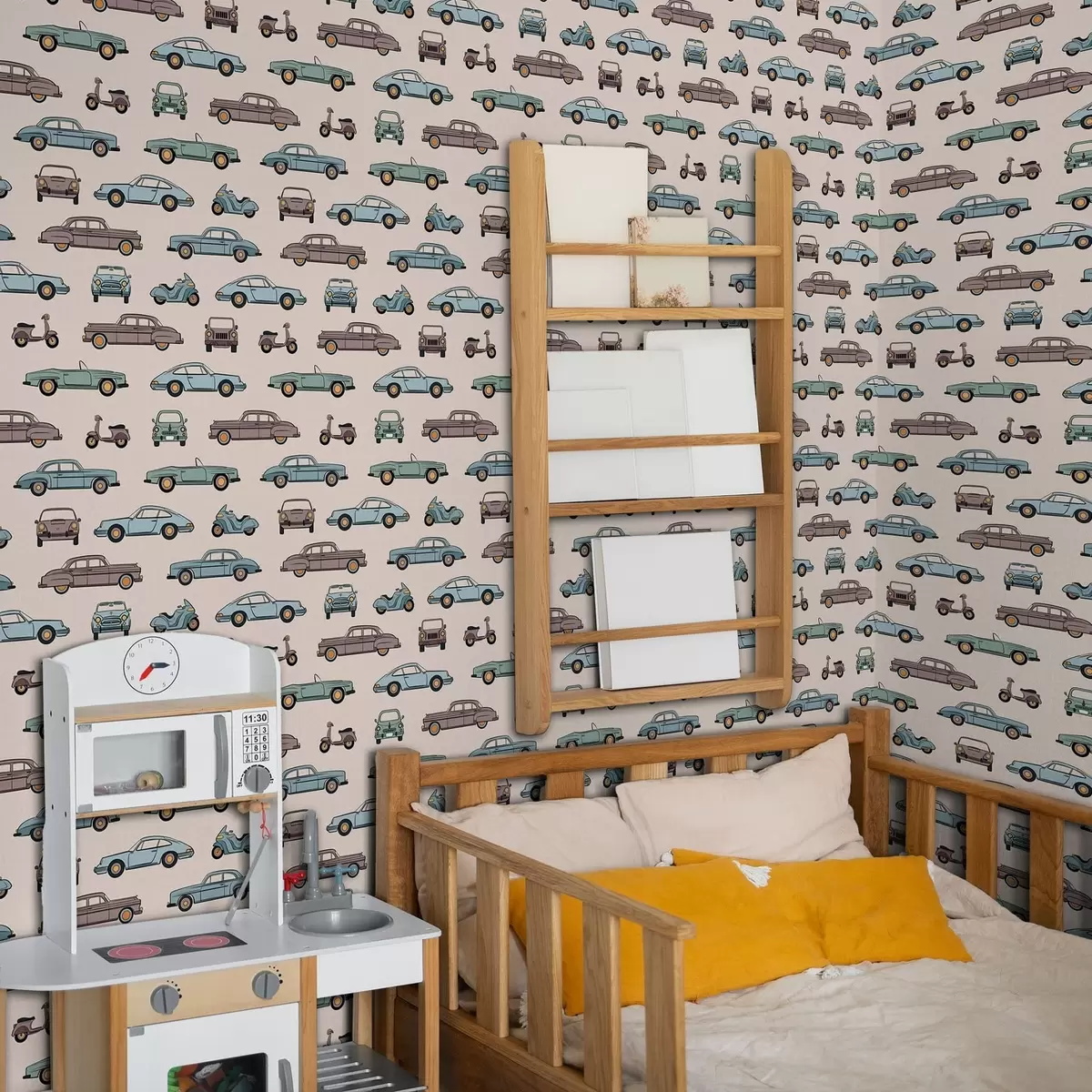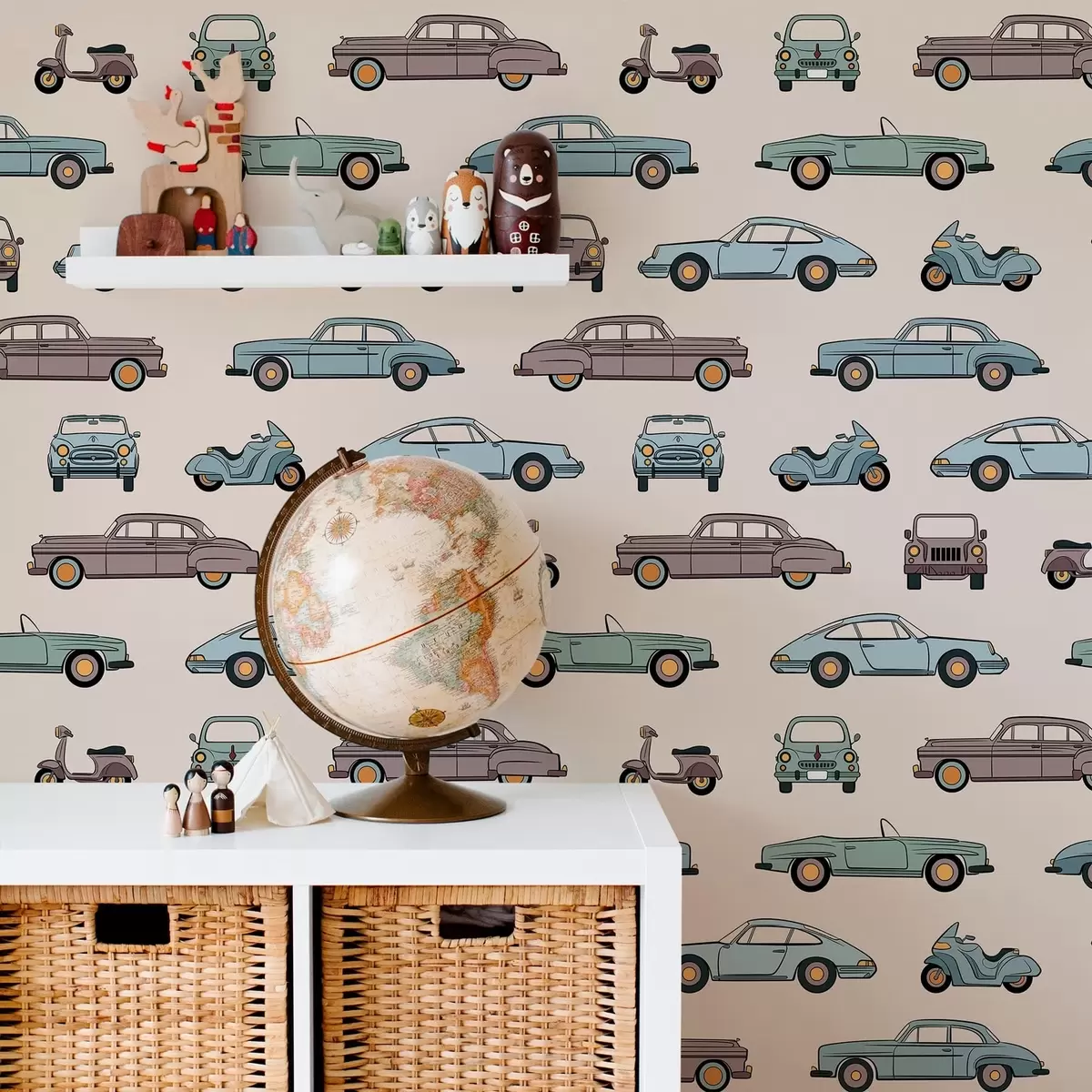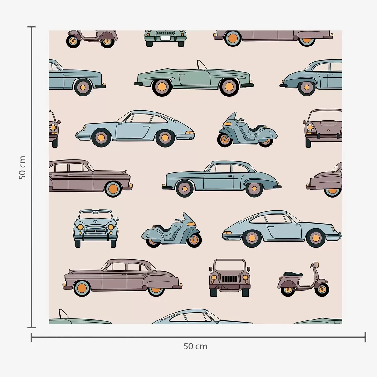 Tapeta Retro autá a skútre na béžovom pozadí Nr. a01178v1