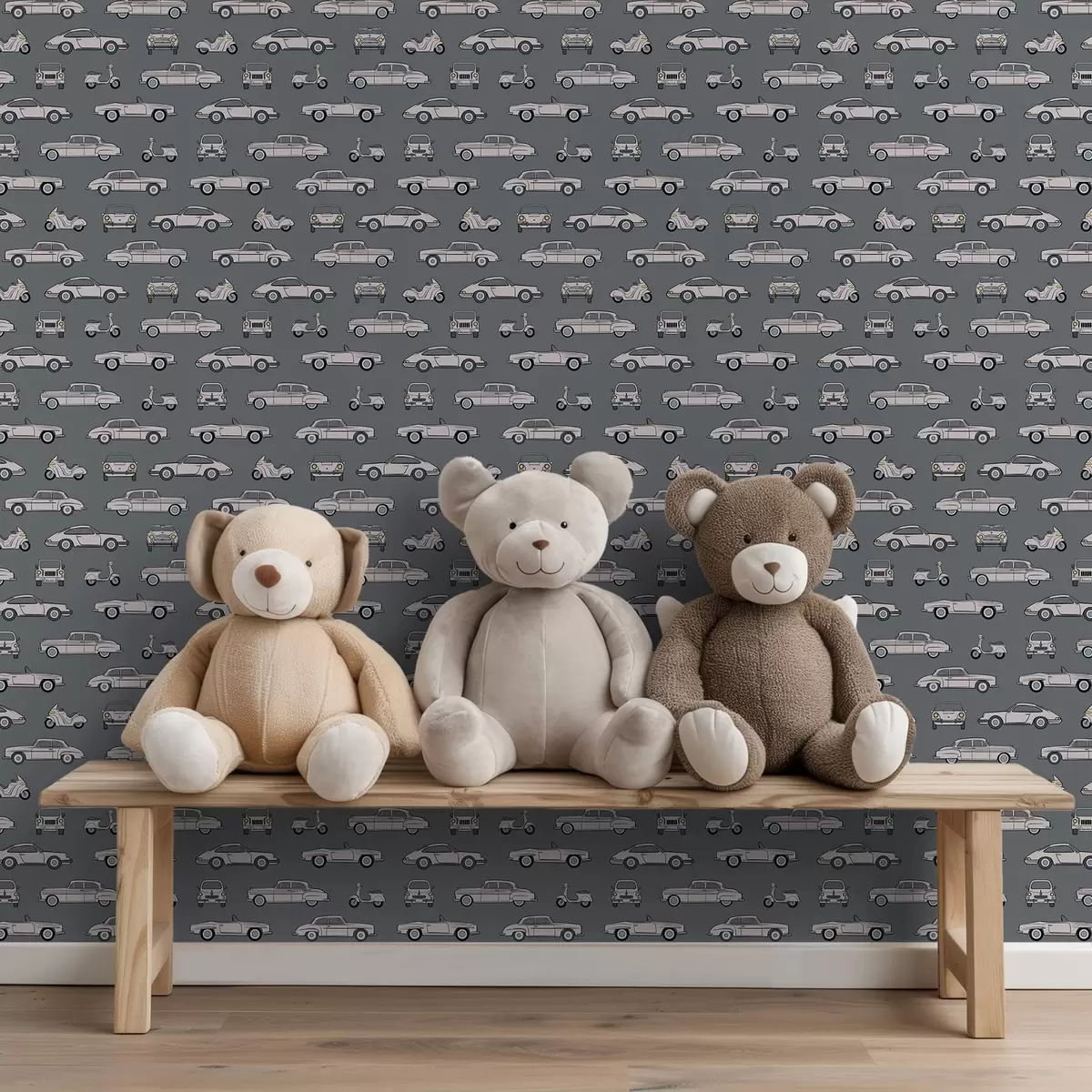 Tapeta Retro autá a skútre na tmavom pozadí Nr. a01178v3